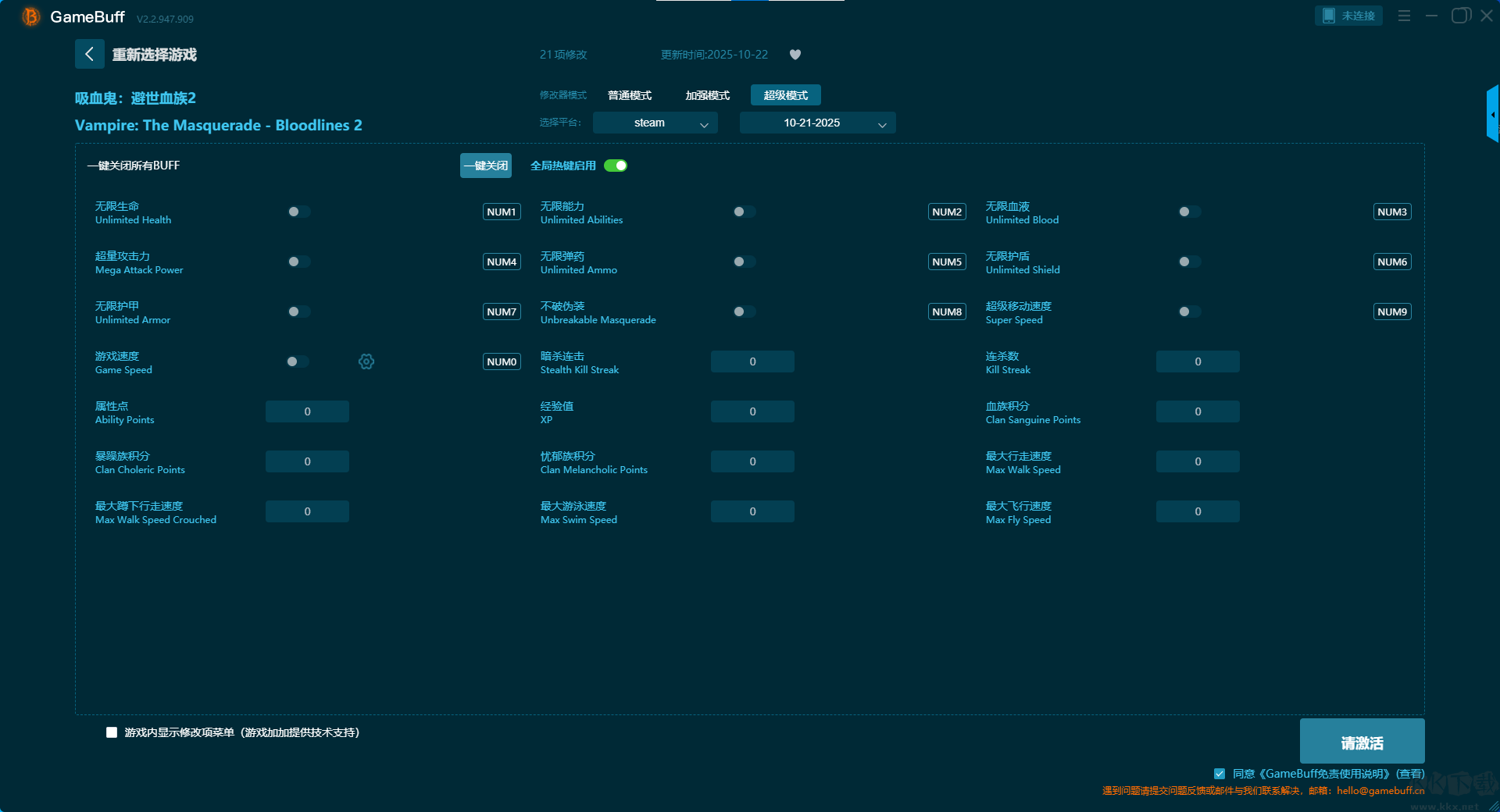 吸血鬼避世血族2二十四項修改器pc國際版超級模式(支持 21 項修改,不支持聯(lián)網(wǎng)模式)