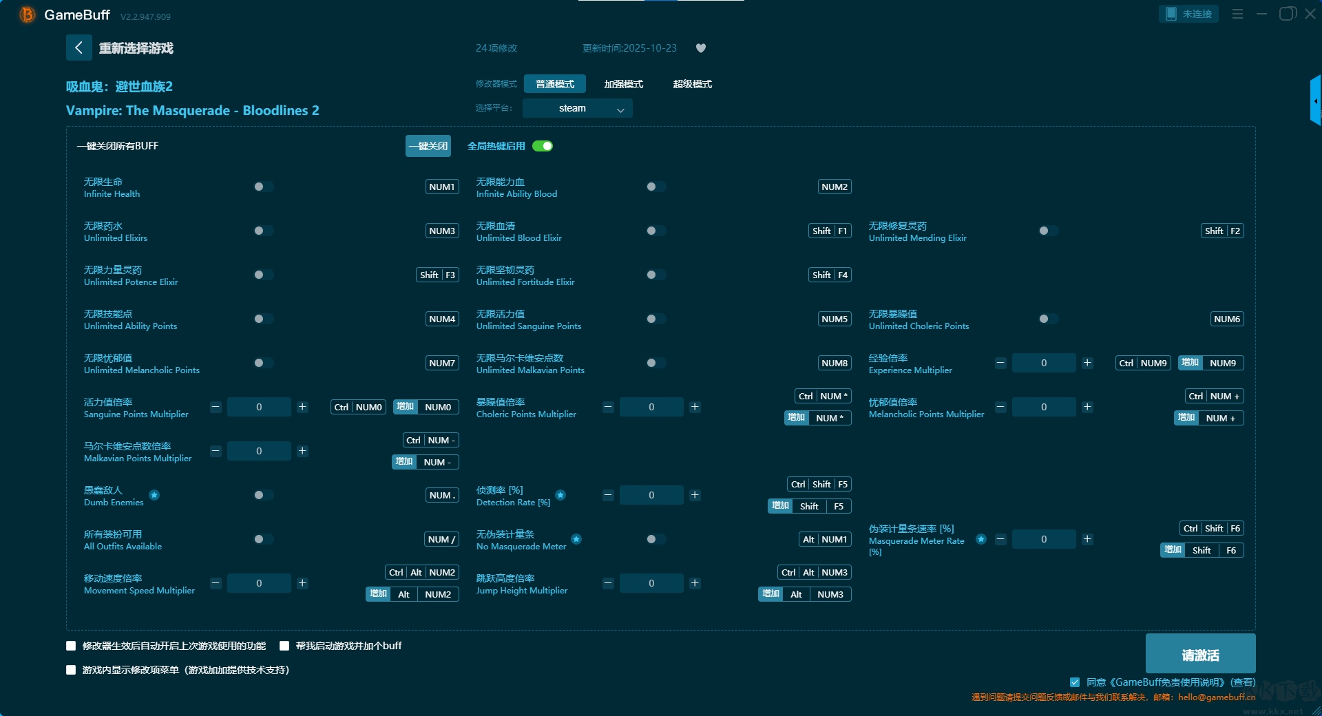 吸血鬼避世血族2二十四項修改器pc國際版是一款使用且強(qiáng)大的游戲輔助工具。這幾款輔助工具可在三種模式中選擇一中開啟使用。支持玩家在游玩過程中開啟,無限生命、無限藥水、無限力量靈藥、無限技能點、無限憂郁值、活力值倍率等多達(dá)24項修改功能。需要這款修改器的小伙伴快來KK下載站下載體驗一下吧。