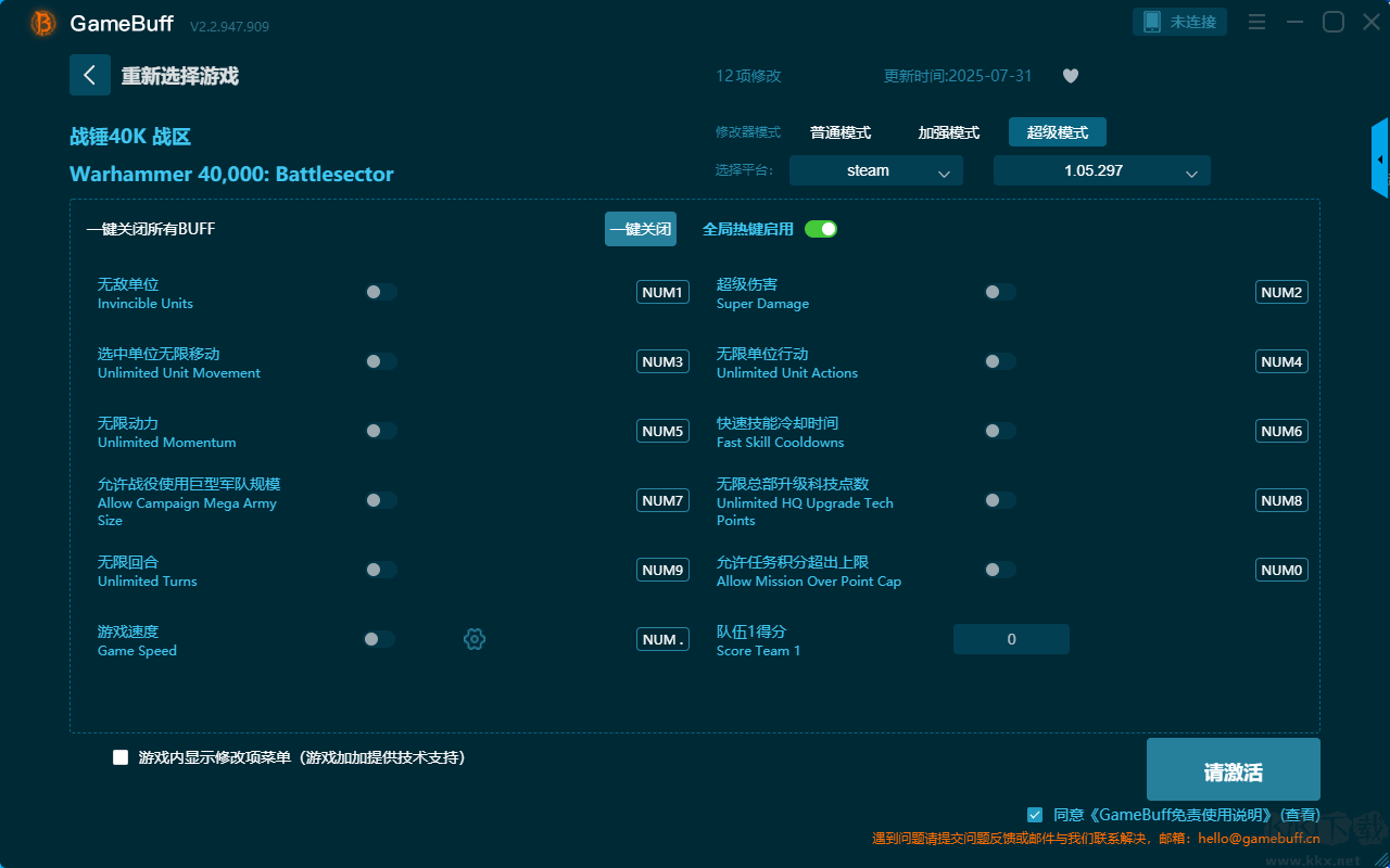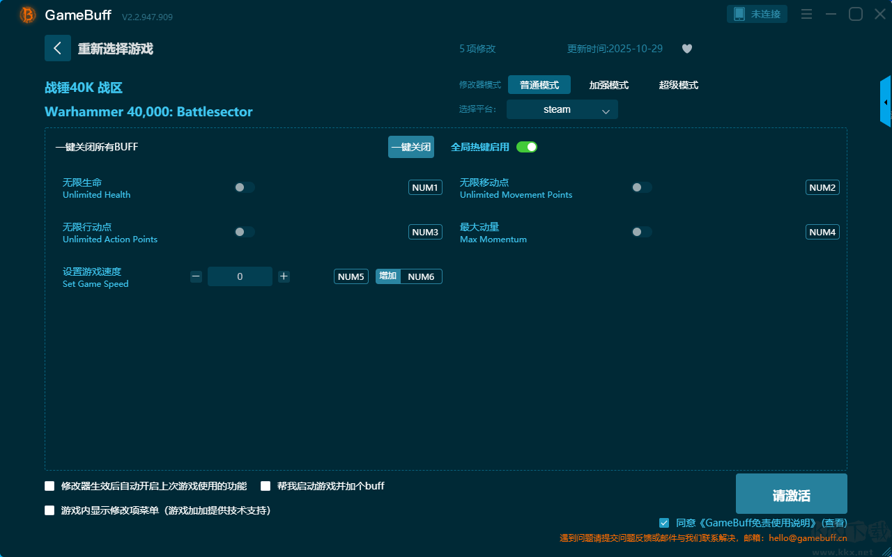 戰(zhàn)錘40K戰(zhàn)區(qū)五項(xiàng)修改器pc正版是一款專業(yè)的游戲修改器。支持玩家啊在游戲的游玩過(guò)程中開(kāi)啟修改器進(jìn)行游戲的修改??梢栽谟螒驊?zhàn)錘40K戰(zhàn)區(qū)中開(kāi)啟1、無(wú)限生命、無(wú)限移動(dòng)點(diǎn)、無(wú)限行動(dòng)點(diǎn)、最大動(dòng)量、設(shè)置游戲速度5項(xiàng)修改器普通模式功能。需要這款修改器的小伙伴快來(lái)KK下載站下載體驗(yàn)一下吧。