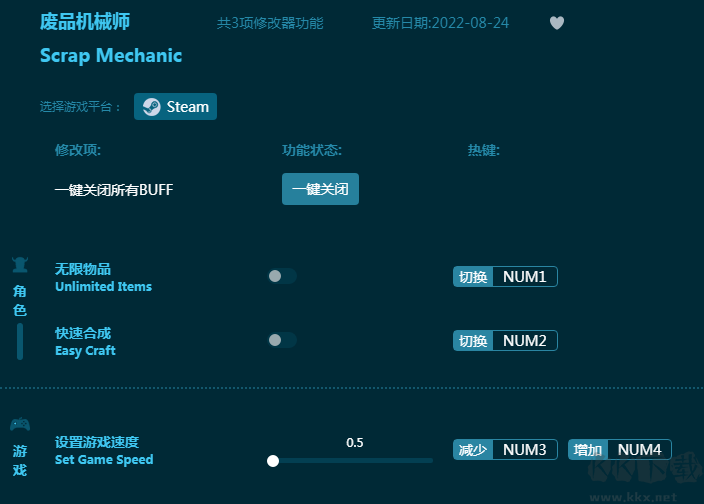 5、等待顯示“BUFF加持成功”后,我們就可以在廢品機械師游戲中使用按鍵來快速激活和關閉對應的修改器功能了