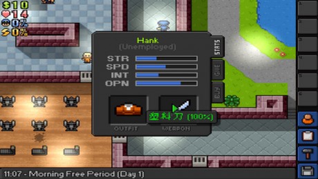 玩家可以通過洗衣服、在木材廠工作和金屬加工獲得資金,也可以通過幫助囚犯獲得資金(任務(wù)通常是從某人手中奪回某些物品,在集合時間制造混亂等)。右鍵單擊一些囚犯可以購買物品,包括武器、衣服等。
