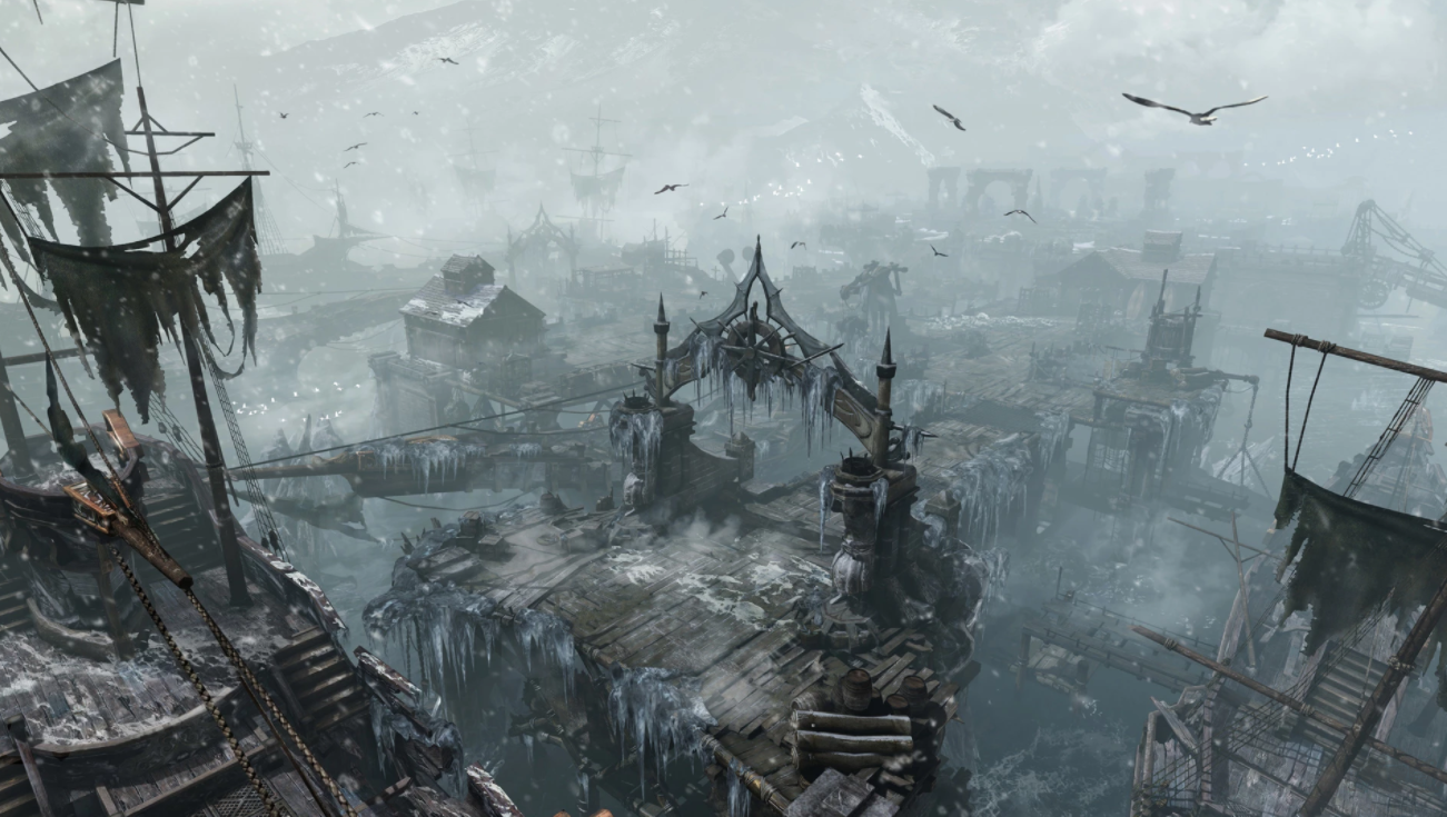 被冰凍之神施法的永恒凍土,一年四季被冰雪覆蓋。大部分居民以狩獵或釣魚維持生計(jì),但由于氣候過(guò)于惡劣,很多人為養(yǎng)家糊口疲于奔命。赤貧的人們不得不自愿成為仆從,仆從交易和地下斗技場(chǎng)也很盛行。