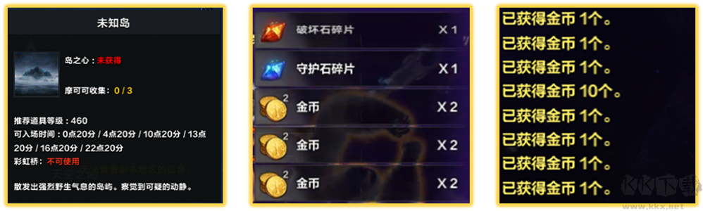 例如未知島,在擊敗最終Boss猩猩時,會掉落約20金。該島嶼每天限時出現(xiàn)六次,可以重復參與活動(同上)。