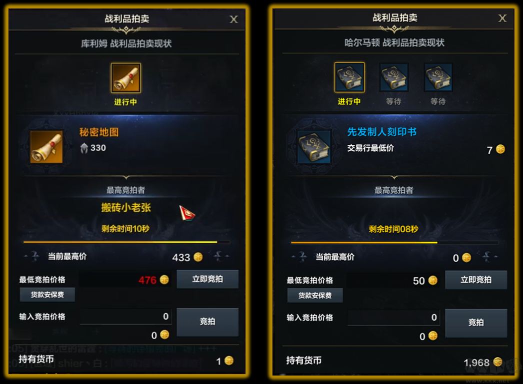 (二)場景拍賣:每次通關混沌之門和野外Boss時,都會進行一次拍賣,出價最高者獲得物品,其他參與者可以平