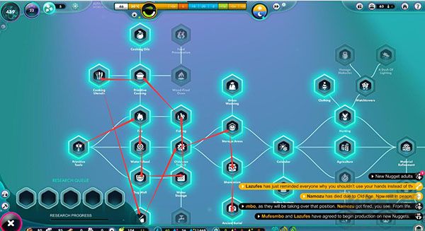 之后我們會(huì)獲得游戲開始的2位市民(泥瓜)亞當(dāng)和夏娃(確信),然后開始選擇科技,建議如圖選擇: