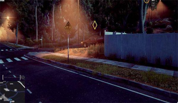 7、按提示我們回到了正馬路上, 這里也需要按提示找到我們的車離開,需要收起撬棍,不然會(huì)報(bào)警。汽車就在被盜那戶的圍欄外側(cè)。