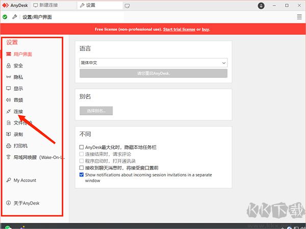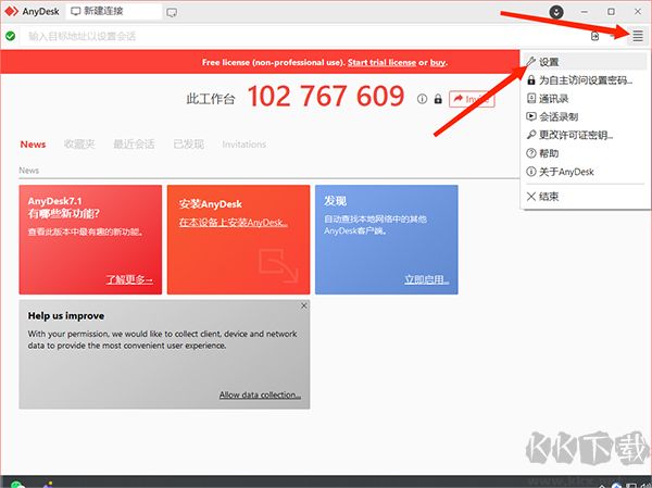 1、打開AnyDesk軟件,點擊右上角“三條橫線”圖標,選擇“設置”選項,