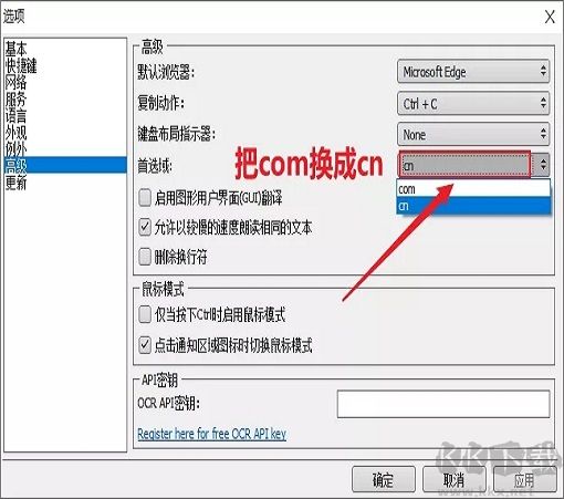 4、接著打開高級功能,將“首選域”換成“cn”并單擊應(yīng)用保存修改。