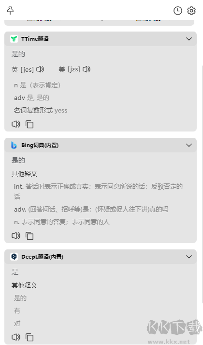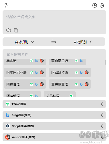 可自由設(shè)置翻譯來源,有效解決部分翻譯接口缺少詞典釋義及英式、美式發(fā)音功能的問題。