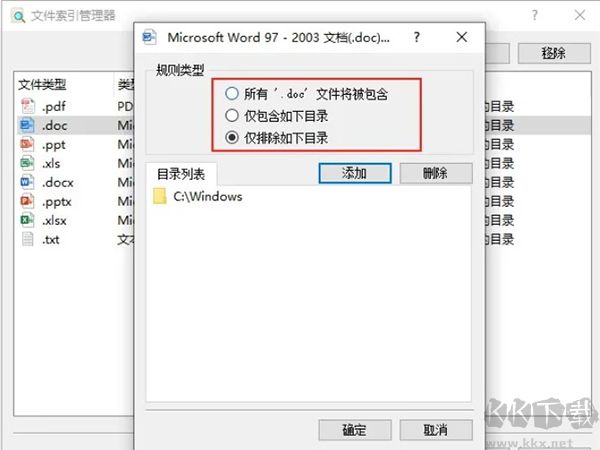 搜索范圍:所有.doc文件、僅包含如下目錄、僅排除如下目錄。