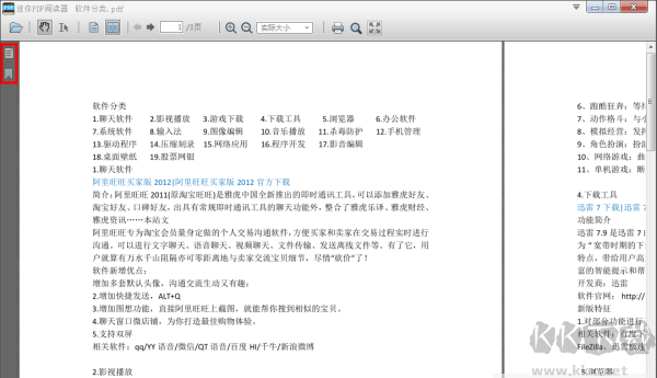 3、左側(cè)的兩個按鈕分別是目錄和書簽。
