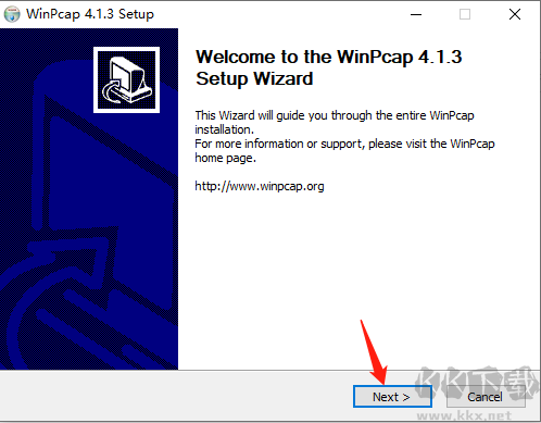 2、下載完成后解壓運行WinPcap_4_1_3.exe安裝文件,就可以進入到下圖中的安裝界面,我們點擊“Next”繼續(xù)安裝。
