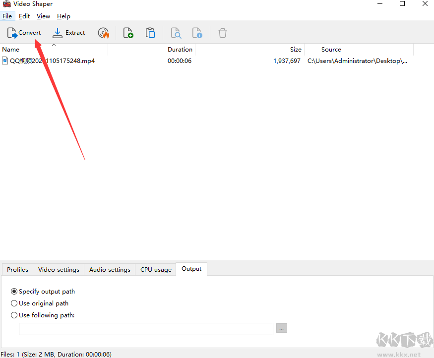 6、完成以上所有步驟后,我們?cè)诮缑孀笊戏秸业?ldquo;Convert”按鈕,點(diǎn)擊該按鈕就可以開始轉(zhuǎn)換視頻格式了。