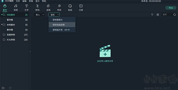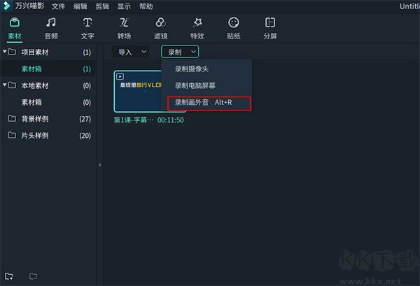 若需加入配音,可在媒體面板的“錄制”中選擇“錄制畫外音”。