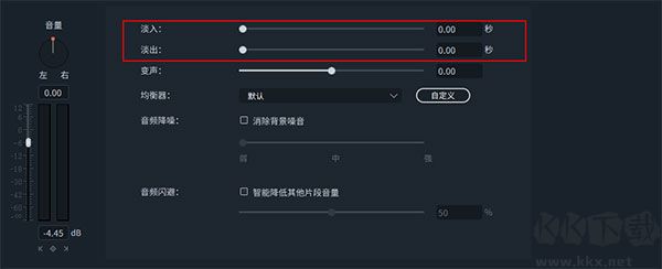 通過拖動滑塊或輸入持續(xù)時間設定淡入淡出效果。