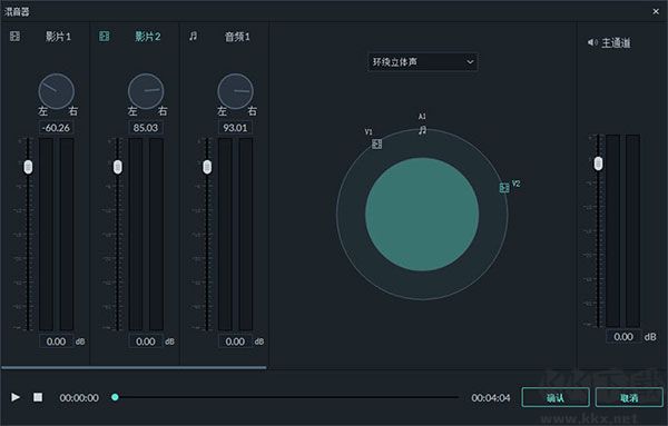 提供兩種模式:立體聲與環(huán)繞聲。在環(huán)繞聲模式下,可進行左右及前后平移,全面控制環(huán)繞聲中的音頻位置。
