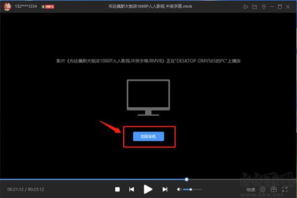 3、投屏過程中,在電腦端點擊“切回本機”即可結(jié)束投屏,返回本地播放。