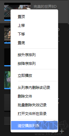 方法二:在播放記錄列表中右鍵單擊,選擇“清空播放記錄”。
