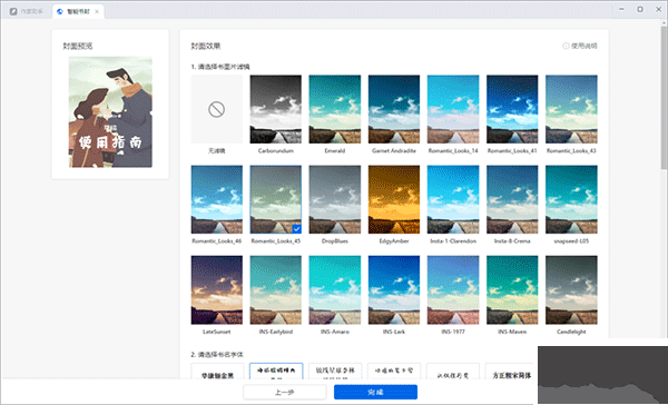 6、根據(jù)個(gè)人偏好選擇書名字體與濾鏡效果,點(diǎn)擊“完成”即可。