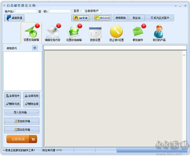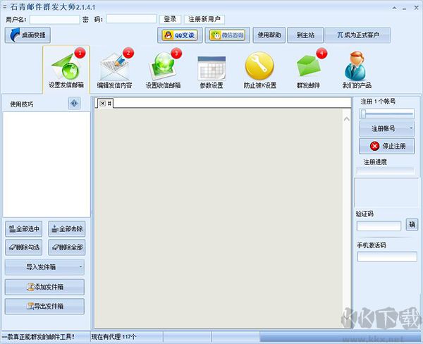 石青郵件群發(fā)大師是一款專業(yè)的郵件批量發(fā)送工具,其系統(tǒng)能夠自動調(diào)節(jié)投遞速率,無需用戶進(jìn)行復(fù)雜配置,軟件采用當(dāng)前流行的Web與郵局混合投遞方式,保障極高的郵件到達(dá)率。目前支持發(fā)送至QQ、163、126、Gmail、雅虎、搜狐、新浪等常見郵箱,支持黑白名單設(shè)置、多媒體郵件發(fā)送、IP實時切換、99%規(guī)避垃圾郵件,是產(chǎn)品推廣與網(wǎng)站宣傳的得力幫手。
