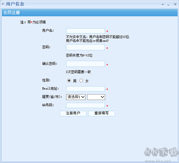 點擊“注冊新用戶”進(jìn)入注冊頁面,填寫完整信息后點擊“注冊用戶”,完成注冊后系統(tǒng)將自動登錄并激活全部功能。