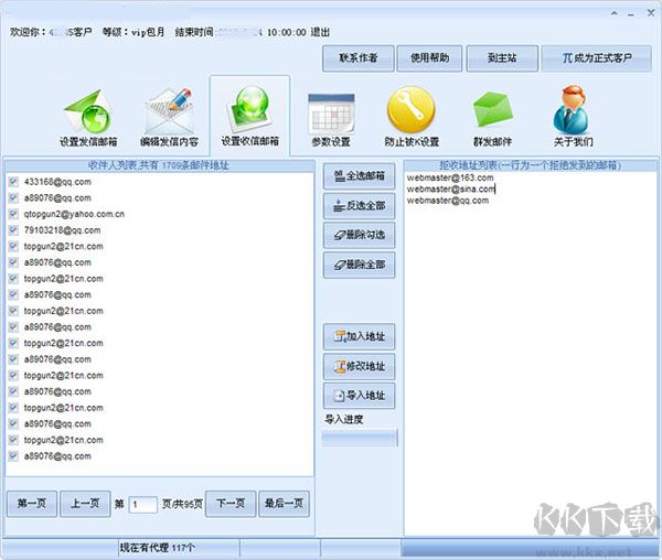 可逐個添加或批量導(dǎo)入收件地址,同時支持設(shè)置拒發(fā)列表,列入該列表的郵箱將不會收到郵件。