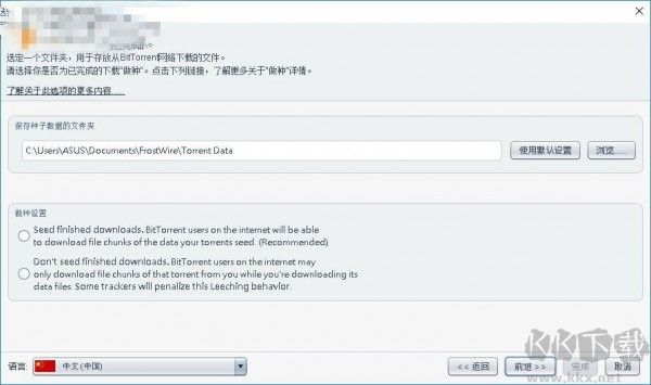 2、在BitTorrent共享設(shè)置中,設(shè)置數(shù)據(jù)保存文件夾,并將語言調(diào)整為中文(中國);