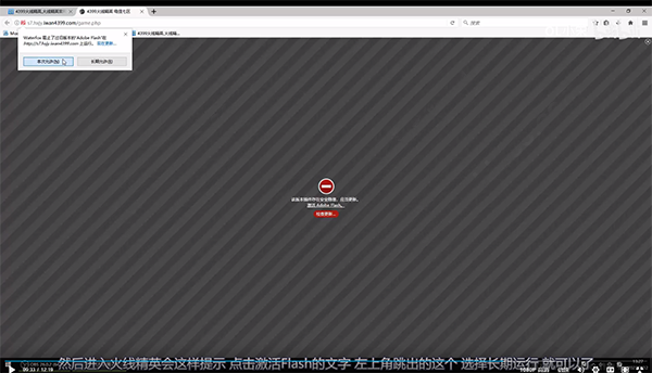 3、接著開啟水狐瀏覽器,進(jìn)入火線精英,就會(huì)啟動(dòng) flash,點(diǎn)擊激活 flash 的文字。