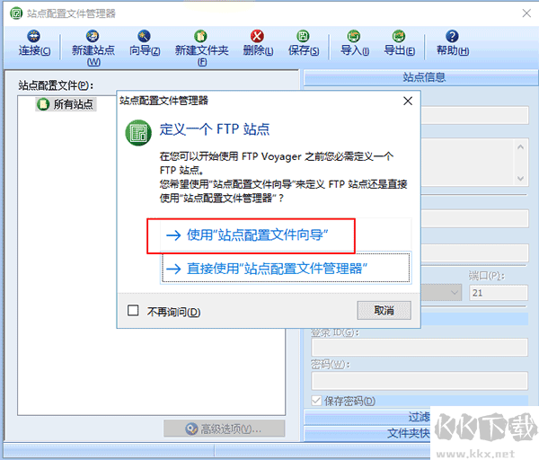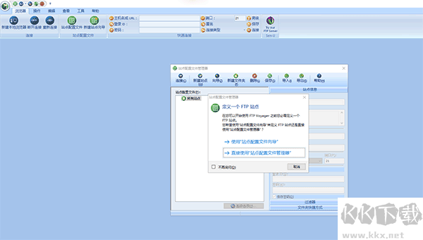 1、開啟 FTP voyager,屏幕會彈出站點配置文件管理器向導的提示。