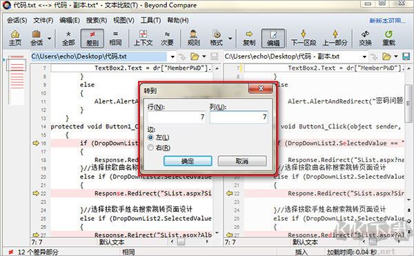 通常在比較代碼文件時,代碼文本內(nèi)容十分的繁雜和冗長,如果想要快速查找某一行的文本內(nèi)容該怎么辦呢?其實一個簡單的快捷鍵操作就可以解決這個問題。使用Ctrl+G快捷鍵后將會彈出一個“轉(zhuǎn)到“的窗口頁面,輸入您需要轉(zhuǎn)到的行號信息,并選擇查找位置,光標將會即刻跳轉(zhuǎn)到相應(yīng)位置。