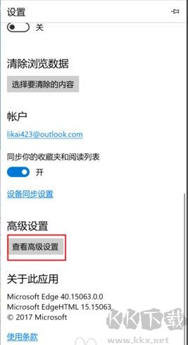 3、進(jìn)入Microsoft Edge瀏覽器設(shè)置界面,找到并點(diǎn)擊“查看高級(jí)設(shè)置”選項(xiàng)。