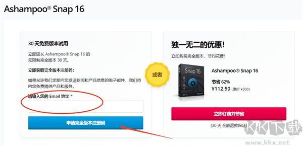 4、瀏覽器頁(yè)面中輸入您的郵箱,點(diǎn)擊申請(qǐng)完全版本注冊(cè)碼