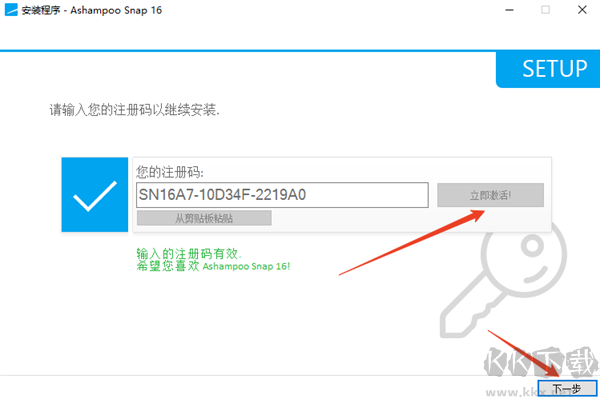 5、將注冊(cè)碼輸入到箭頭所指,而后點(diǎn)擊立即激活