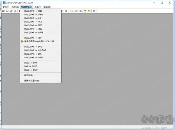 Acme CAD Converter(CAD工具)是一款實用的CAD圖片格式轉(zhuǎn)換與DWG圖形圖像查看工具,軟件小巧且完全綠色實用??梢栽谲浖?nèi)實現(xiàn)CAD圖紙高低版本轉(zhuǎn)換,支持高版本轉(zhuǎn)為兼容低版本;能查看并打開各類DWG、DXF格式文件,還可將CAD文件輸出為DWG、DXF、PDF、WMF、SVG、HPGL、CGM、EPS等格式,也能將CAD圖像文件輸出為BMP、GIF、JPEG、PCX、TIFF、PNG、TGA等圖像格式,滿足不同格式輸出需求??梢栽谲浖?nèi)直接將CAD圖像轉(zhuǎn)為PDF文檔,方便分享與傳輸。