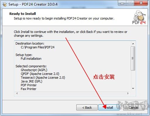 安裝過(guò)程十分簡(jiǎn)單。從pdf24.org下載安裝程序并運(yùn)行。安裝向?qū)⒁龑?dǎo)完成整個(gè)流程。安裝完成后,PDF打印機(jī)即可立即使用