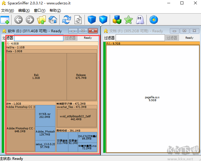 SpaceSniffer是一款免費可靠的存儲空間分析工具,能幫我們直觀的查看硬盤數(shù)據(jù)占用情況及文件分布結(jié)構(gòu)。軟件通過區(qū)塊、數(shù)字和色彩來展示硬盤中目錄與文件的大小,讓我們清晰掌握存儲空間的使用狀況,只需要簡單點擊,SpaceSniffer便會提供所選文件的詳細概覽,包含文件名稱、擴展名、容量、日期、屬性等信息!