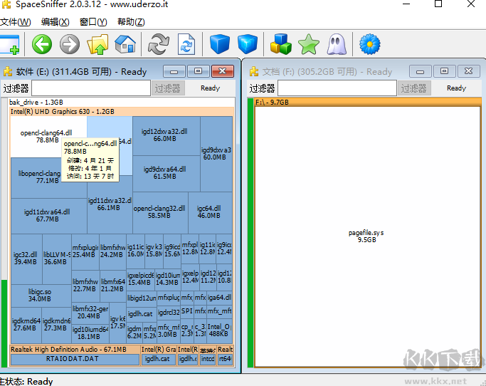 點擊任意區(qū)塊即可放大查看詳情,雙擊直接在文件管理器中打開目標位置。