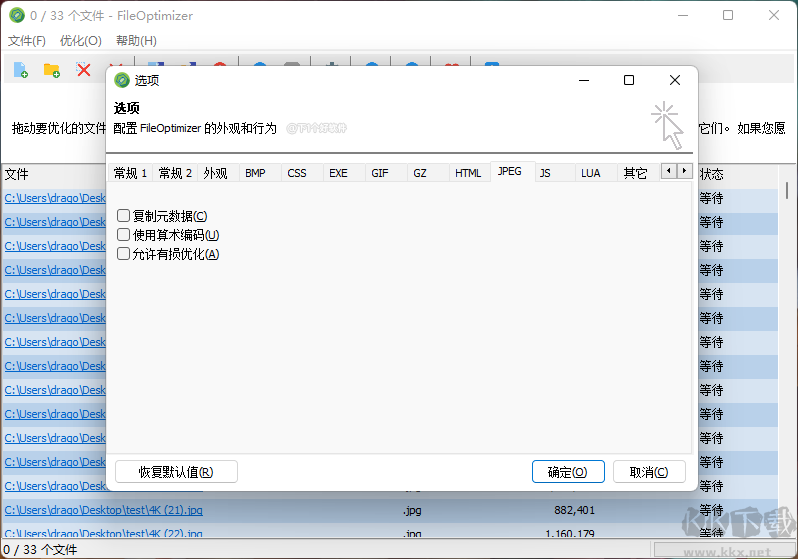 FileOptimizer是一款高效的文件批量壓縮工具,軟件采用多種優(yōu)化技術(shù),可以在保持文件格式與內(nèi)容不變的前提下,對已壓縮文件進行進一步壓縮,確保文件的兼容性與可用性。軟件操作簡單,你只需要把文件拖拽到應用界面,就可以快速壓縮文件,針對圖像類文檔,你可以通過調(diào)整畫質(zhì)參數(shù)精確控制壓縮效果,進一步降低圖片容量,從而提升上傳效率,在批量處理方面,軟件支持同時壓縮多個文件,讓工作效率顯著提升。