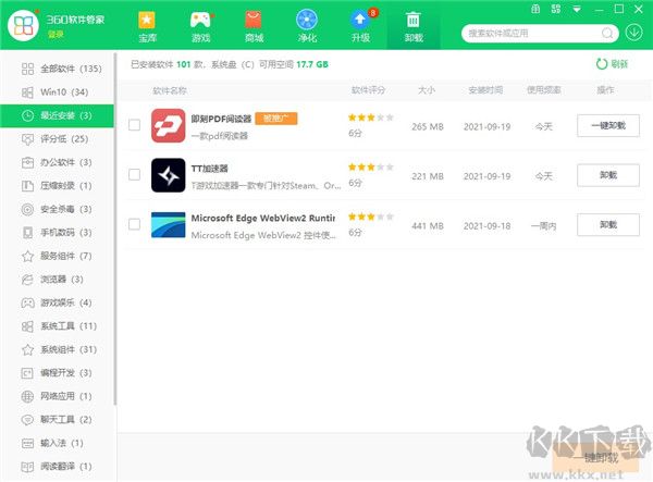 1、在電腦上點擊360軟件管家,然后找到tt加速器,點擊卸載。