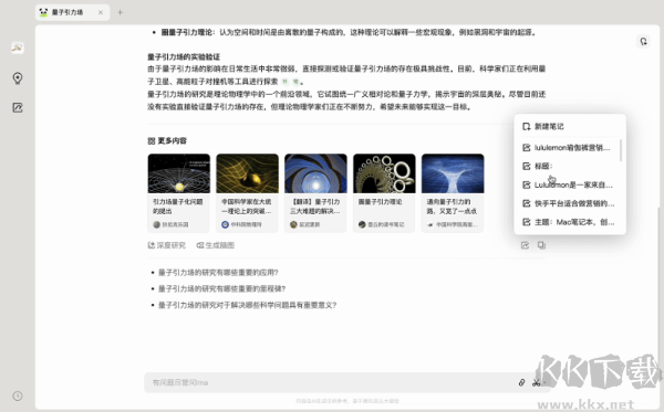 無論是圖像還是文字,點(diǎn)擊AI回答底部的“記筆記”按鈕,即可快速保存至筆記中