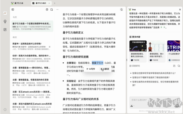 ima.copilot(簡稱“ima”)是一款智能工作臺(tái)產(chǎn)品,已接入騰訊混元大模型與DeepSeek R1大模型,軟件基于全網(wǎng)信息源進(jìn)行應(yīng)答,可以幫我們獲取各類優(yōu)質(zhì)解答,實(shí)現(xiàn)與用戶的實(shí)時(shí)互動(dòng)交流,同時(shí)還能根據(jù)每個(gè)人的個(gè)性化需要提供定制化回復(fù),將我們關(guān)注的內(nèi)容進(jìn)行整合,成為一個(gè)具備思考能力的AI工具,為大家?guī)砣蚂`感。除問答功能外,軟件還提供文本創(chuàng)作能力,可以幫我們進(jìn)行廣告文案、學(xué)術(shù)論文、作文、小說等多類文本的撰寫,提升我們的寫作效率。