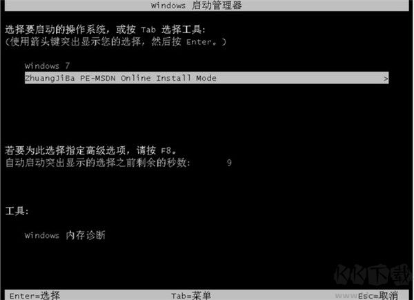 4、進(jìn)入windows啟動(dòng)管理器界面,選擇第二個(gè)pe系統(tǒng)進(jìn)入。