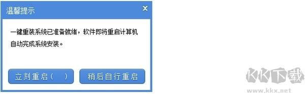 4、待系統(tǒng)下載完畢后,就可以進(jìn)行Win7系統(tǒng)一鍵安裝過程了。在一鍵安裝Win7系統(tǒng)之前,會出現(xiàn)一個提示框,提醒您軟件即將重啟計(jì)算機(jī)自動完成系統(tǒng)安裝,您只需點(diǎn)擊立刻重啟即可。