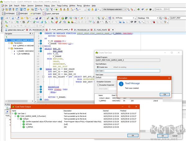 該工具用于編寫、編譯、測(cè)試和調(diào)試存儲(chǔ)過(guò)程與觸發(fā)器。Toad 提供語(yǔ)法高亮、錯(cuò)誤提示等實(shí)用功能,并可在彈出提示中顯示表名、列名及 Oracle 內(nèi)置函數(shù)。與多數(shù) PL/SQL 工具不同,Toad 支持在單一文件中管理多個(gè)數(shù)據(jù)庫(kù)對(duì)象,允許編譯單個(gè)對(duì)象、批量編譯、編譯至光標(biāo)位置或從光標(biāo)處開始編譯。當(dāng)運(yùn)行出錯(cuò)時(shí),執(zhí)行會(huì)暫停在異常語(yǔ)句處。用戶可通過(guò)快捷鍵或預(yù)設(shè)模板快速輸入代碼,也可根據(jù)習(xí)慣創(chuàng)建個(gè)性化模板。編輯過(guò)程中支持添加書簽、注釋切換、SQL 格式化等操作,提升編碼體驗(yàn)。