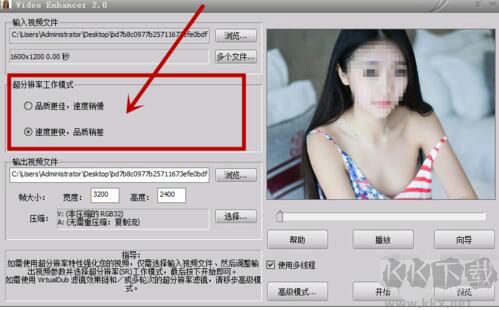 3、選擇好要處理的文件以后,然后再設(shè)置分辨率工作模式,這個(gè)設(shè)置要根據(jù)個(gè)人的需求而定。