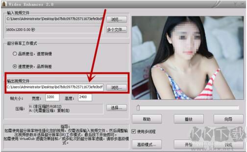 4、設(shè)置好分辨率工作模式以后再填寫輸出視頻文件路徑。
