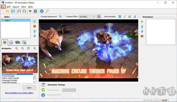 DP Animation Maker(GIF動畫制作工具)是一款好用的動畫制作工具,擁有友好美觀的操作界面。它支持用戶創(chuàng)建動畫背景、網頁用動畫GIF文件及EXE綠色單文件,還提供眾多動畫特效,能滿足多樣的動畫創(chuàng)作需求。可以把精致圖片轉換成實時移動場景的畫面,只需要少量操作,就能從精美圖片中制作出動態(tài)GIF。它能快速生成專屬GIF動圖,配備獨一無二的工具,涵蓋豐富動畫效果,幫助把圖片打造成專業(yè)的視覺視頻效果,還能為圖片添加各類心儀的動畫特效,功能十分強大。需要的朋友快來下載試試吧!