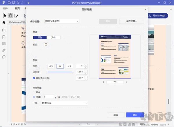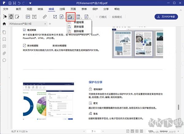 4、刪除背景:刪除文檔中的背景(非萬興PDF專家軟件創(chuàng)建的背景不一定可以刪除成功)