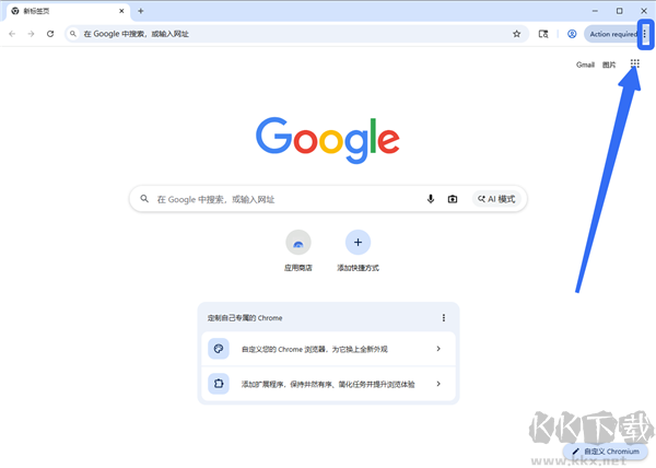 1、進(jìn)入Chromium瀏覽器,點(diǎn)擊右上角三豎點(diǎn)標(biāo)識(shí)。