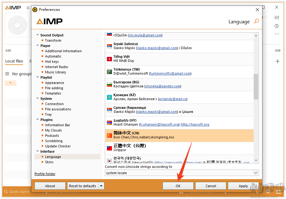 5、選擇“簡(jiǎn)體中文”,點(diǎn)擊“OK”確認(rèn);